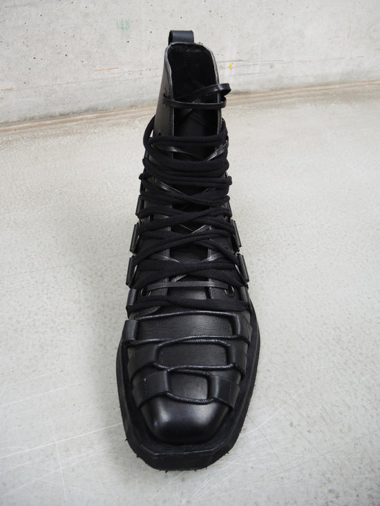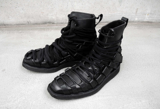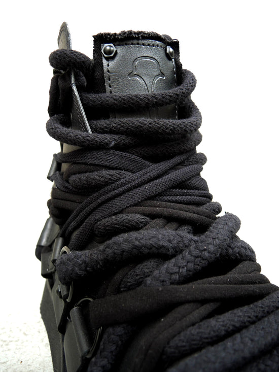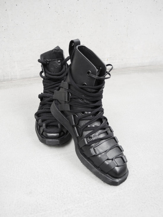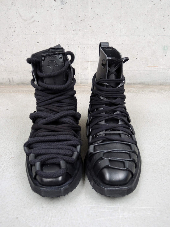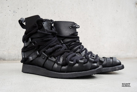 Ein Schuh, so individuell wie Dein Weg: kantig in der Form, schlicht in der Basis – und durch wild gewickelte, frei geschnürte Senkel zu Deinem ganz persönlichen Statement.